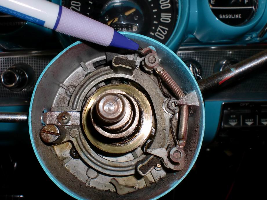 このベルエアの元々の色は赤で、エンジンが載ったままペイントをしたらしく